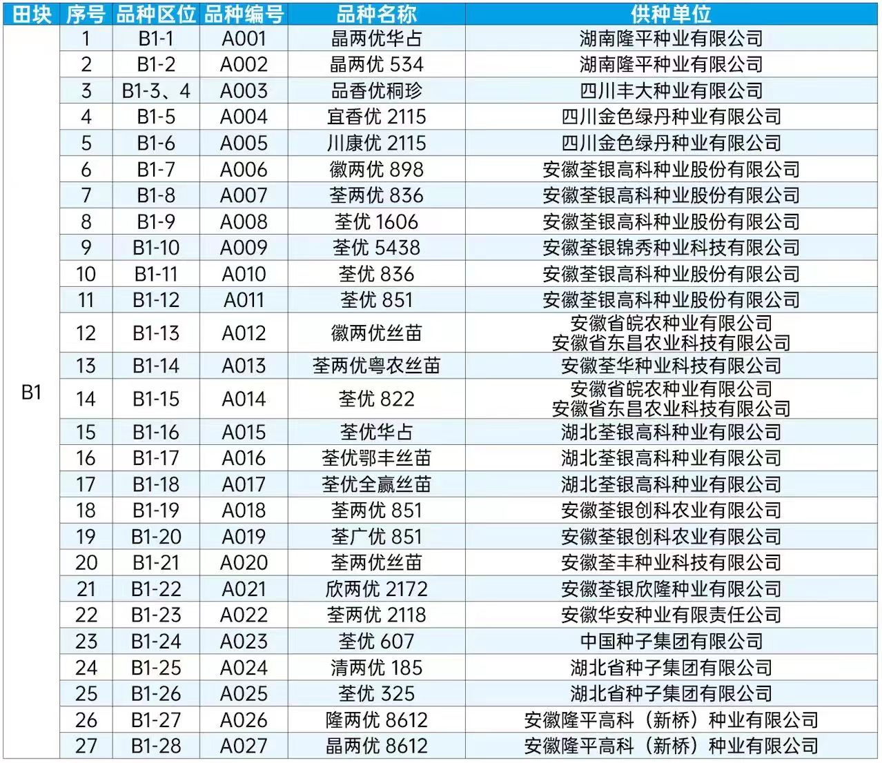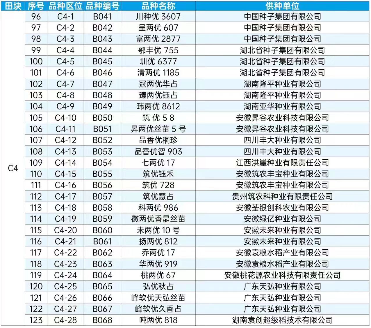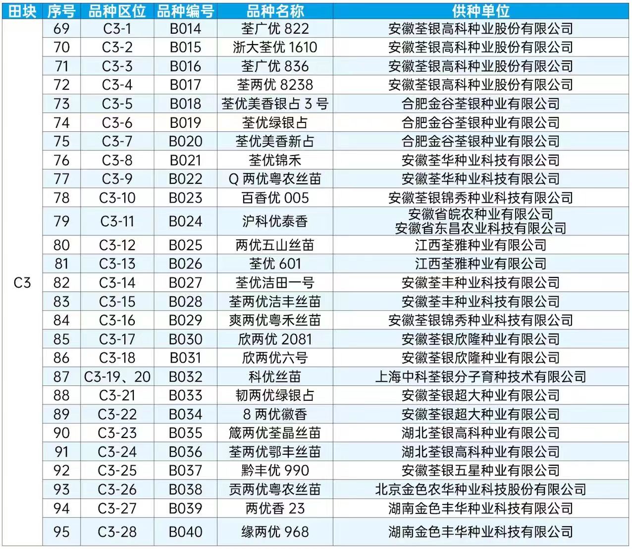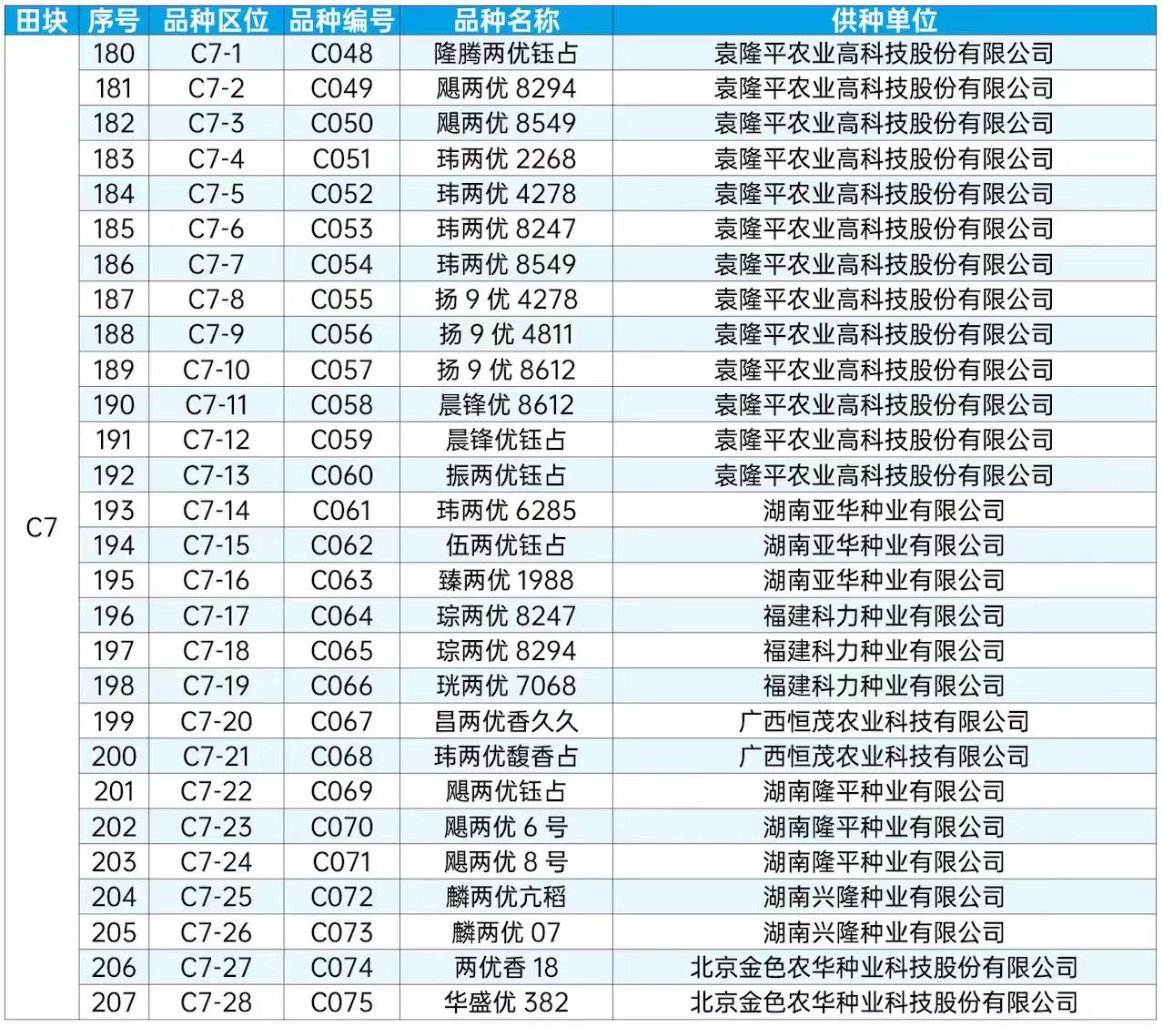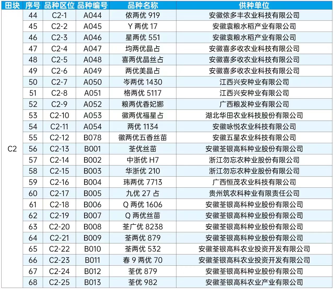 第二十屆全國種子雙交會田間種植展示品種目錄